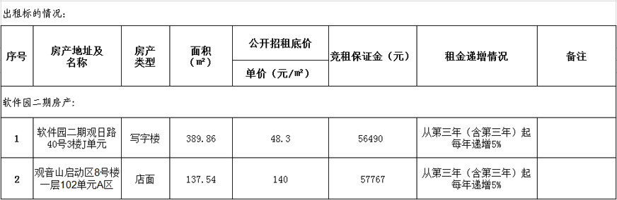 備注:意向承租人對上述情況應有充分了解。詳細招租規則、房屋租賃合同樣本、承諾函、報價(jià)單等招租文件于報名參加時(shí)領(lǐng)取。