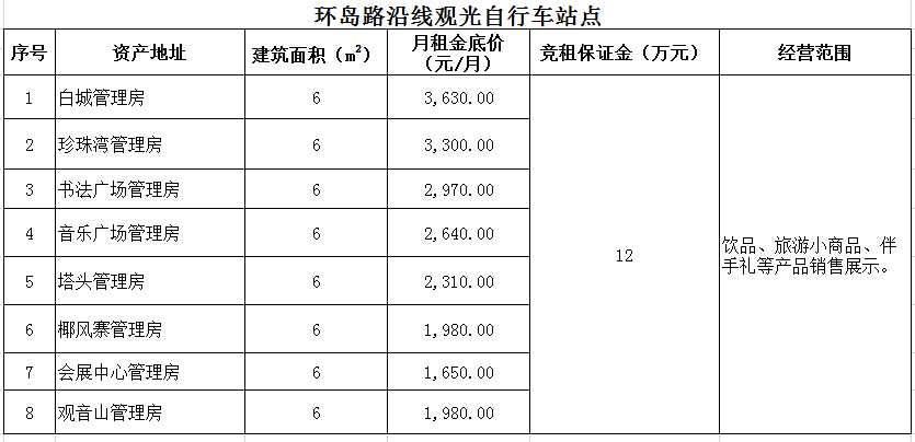 備注:意向承租人對上述情況應有充分了解。詳細招租規則、合同、承諾函、報價(jià)單等招租文件于報名參加時(shí)領(lǐng)取。
