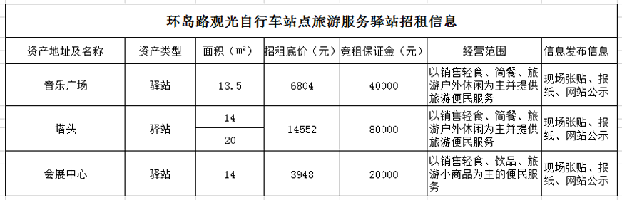 備注:意向承租人對上述情況應有充分了解。詳細招租規則、合同、承諾函、報價(jià)單等招租文件于報名參加時(shí)領(lǐng)取。