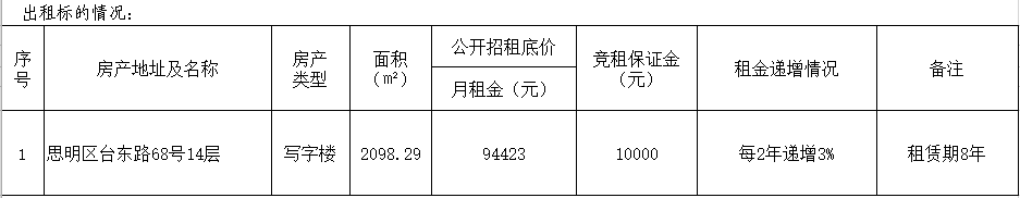 思明區臺東路68號14層房產(chǎn)公開(kāi)招租公告