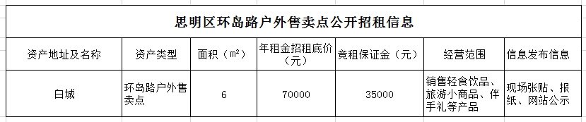 思明區環(huán)島路戶(hù)外售賣(mài)點(diǎn)公開(kāi)招租公告