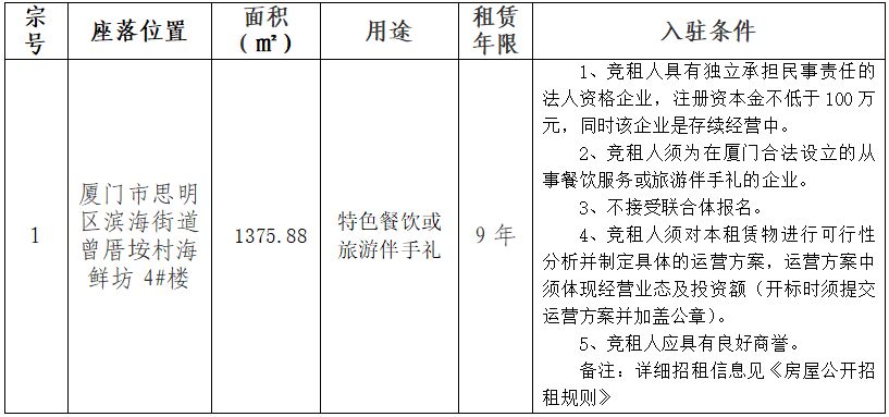 曾厝垵海鮮坊4#樓房產(chǎn)公開(kāi)招租公告