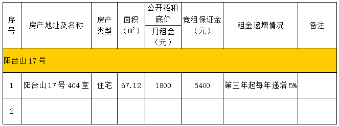 備注:意向承租人對上述情況應有充分了解。詳細招租規則、房屋租賃合同樣本、承諾函、報價(jià)單等招租文件于報名參加時(shí)領(lǐng)取。
