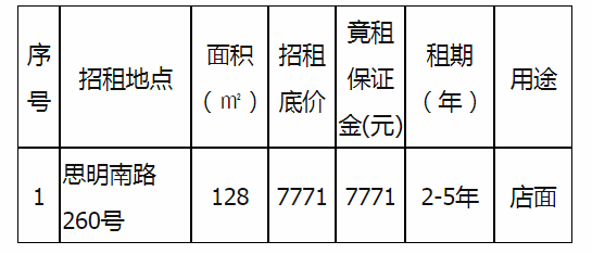 備注:意向承租人對上述情況應有充分了解。詳細招租規則、房屋租賃合同樣本、承諾函、報價(jià)單等招租文件于報名參加時(shí)領(lǐng)取。