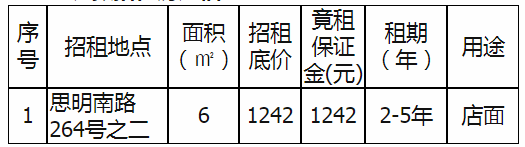 備注:意向承租人對上述情況應有充分了解。詳細招租規則、房屋租賃合同樣本、承諾函、報價(jià)單等招租文件于報名參加時(shí)領(lǐng)取。