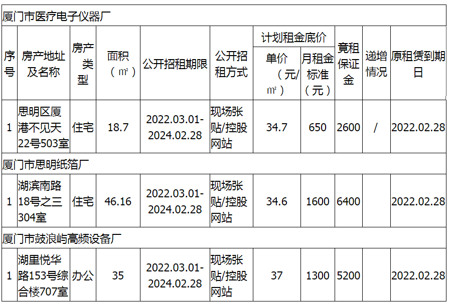 思明區屬托管企業(yè)出租房產(chǎn)招租公告(2022年1-3月)