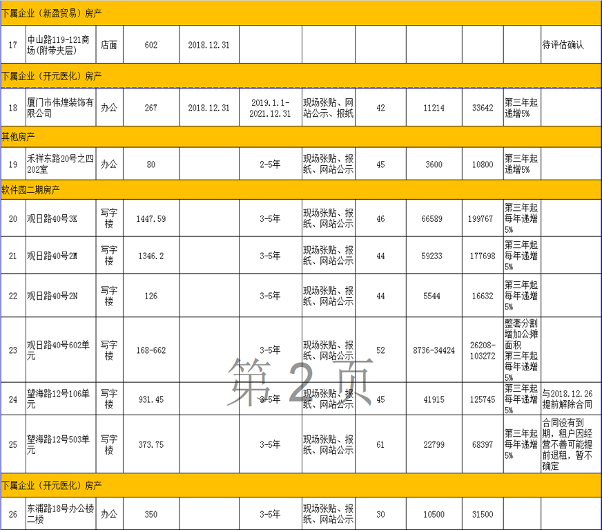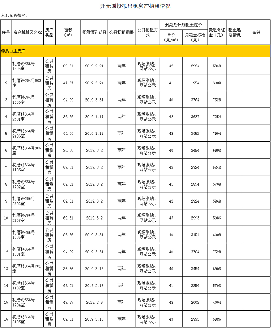 開(kāi)元國投2019年1-3月到期、空置房產(chǎn)公開(kāi)招租